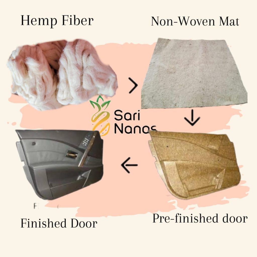 Lembaran non-woven mat serat nanas digunakan untuk membentuk panel-panel pintu. Proses ini melibatkan pemotongan dan bentuk yang sesuai dengan desain pintu mobil.